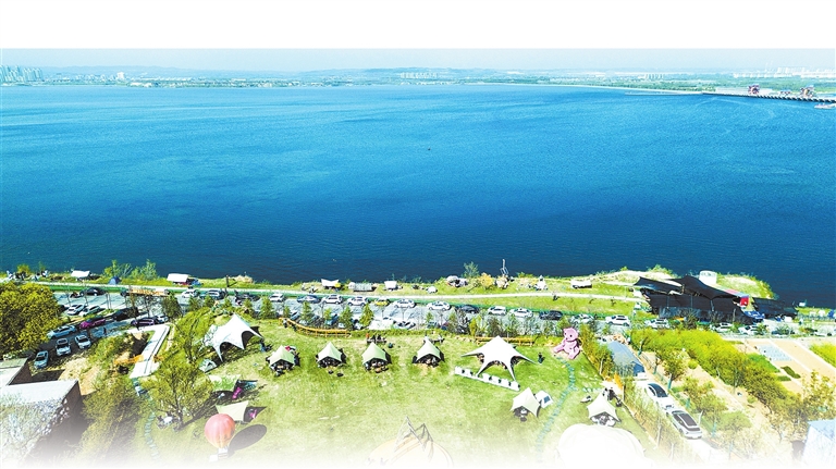 4月5日,游客在洛阳市孟津区白鹤镇境内的黄河生态廊道生态观景平台和观光驿站露营休闲。 黄政伟 摄